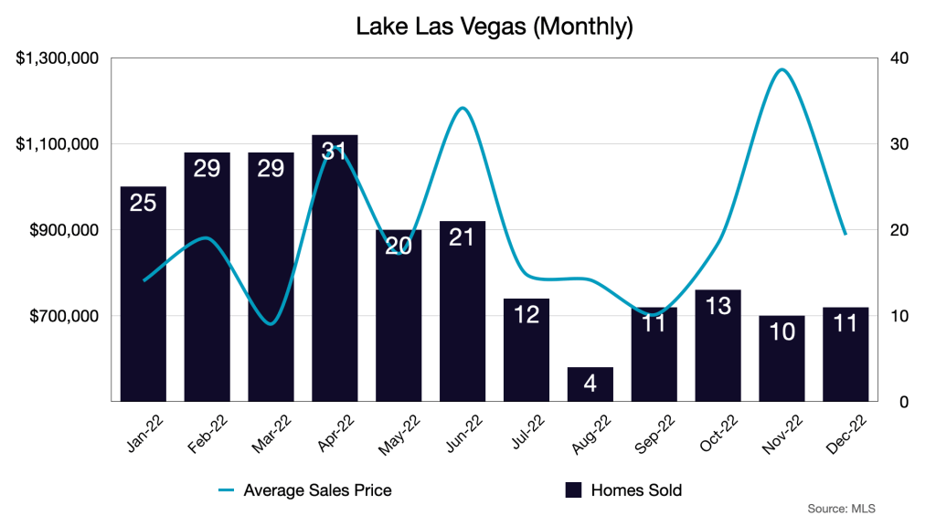 At the beginning of 2022, Lake Las Vegas was in a strong seller’s market with less than 3 months of inventory. We peaked in November at 6.9 and the recent sales uptick has brought us back to a balanced 6 months of inventory.